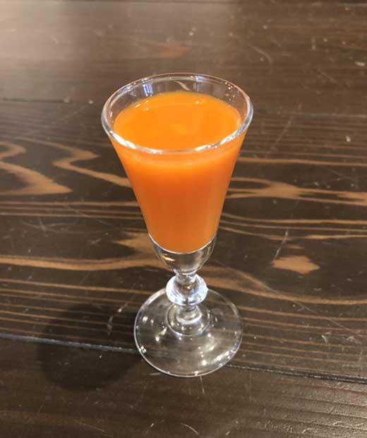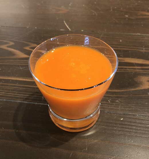 にんじんをただ搾るだけでなく、すりおろすことでニンジンの繊維をろ過せずにそのままジュースに入れているので「トロッ」として濃厚。