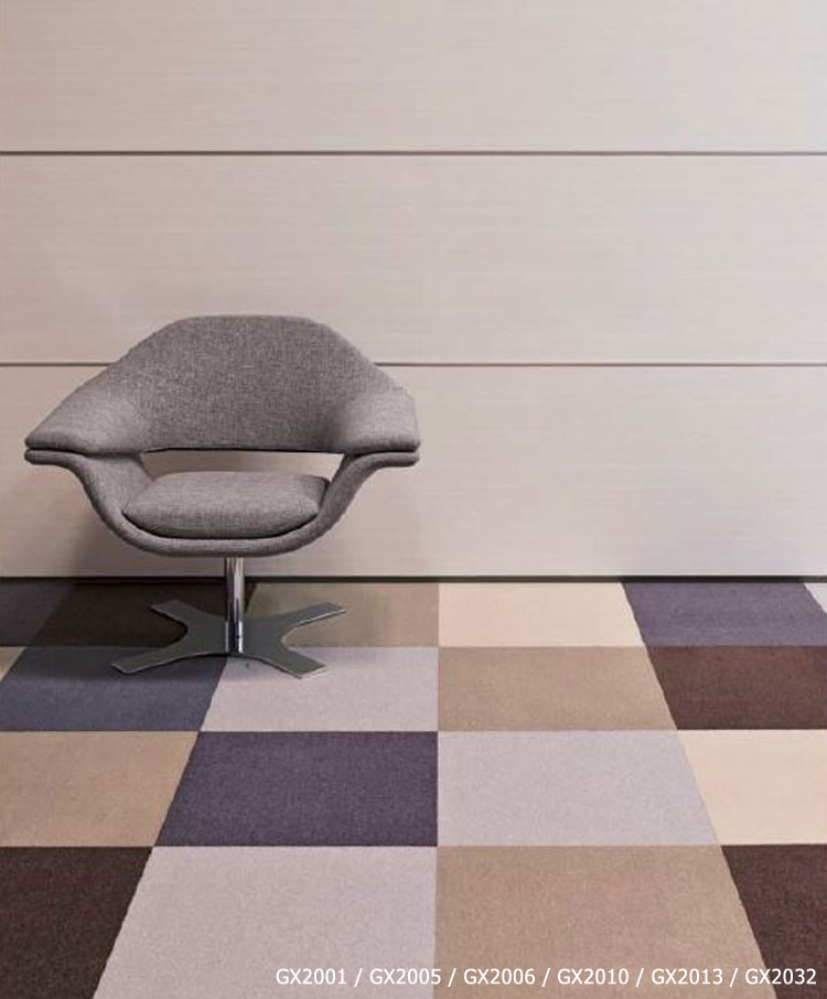 GX-200のカラーバリエーション GX-200の商品説明 ・パイル BCFナイロン100% ・パッキング 塩ビ樹脂+ガラス繊維布 ・パイル長 6mm カットパイル ・全厚 9mm ・寸法 500mm×500mm ・密度 1/10ゲージ 13.5ステッチ ・防炎 防炎性能試験番号 EO000094 ・制電 人体帯電圧1.0kv以下 ・防汚 フッ素系樹脂による防汚加工 ・ホルムアルデヒド放散等級 インテリアファブリックス性能評価協議会認定 認定番号J04-30089 ・品番 GX2001(ベージュ系) / GX2002(ブラウン系) / GX2004(レッド系) GX2005(グレー系) / GX2006(ブラウン系) / GX2007(グリーン系) GX2008(グリーン系) / GX2009(ブラック系) / GX2010(グレー系) GX2013(ベージュ系) / GX2014(レッド系) / GX2015(ブラウン系) GX2016(グリーン系) / GX2017(オレンジ系) / GX2018(グレー系) GX2019(パープル系) / GX2021(ブルー系) / GX2022(ネイビー系) GX2023(グレー系) / GX2026(ブルー系) / GX2027(ベージュ系) GX2028(レッド系) / GX2029(ブラウン系) / GX2030(ブラウン系) GX2031(ブラウン系) / GX2032(ベージュ系) / GX2034(イエロー系) GX2035(グリーン系) / GX2036(ピンク系) / GX2038(ブルー系) ※市松貼りを標準とします。