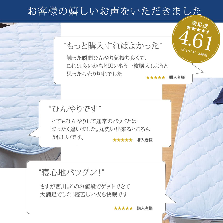 メーカー希望小売価格はメーカー商品タグに基づいて掲載しています商品詳細 サイズ シングルサイズ 100×205cm 組成 表側:ナイロン100%(接触冷感素材) 裏側:ポリエステル100% 詰め物:ポリエステル100% 1.1kg(スタッフ計測) メーカー 昭和西川株式会社 生産国 中国製 商品仕様 四辺ゴム付、洗濯機で丸洗い可能(ネット使用) 商品説明 夏に嬉しい超接触冷感の冷たさ。