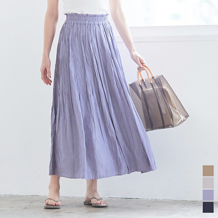 マットサテンワッシャープリーツスカート/ボトムス/レディース/スカート/ロング丈/ランダムプリーツ/ウエストゴム/シンプル【UR’S ユアーズ】